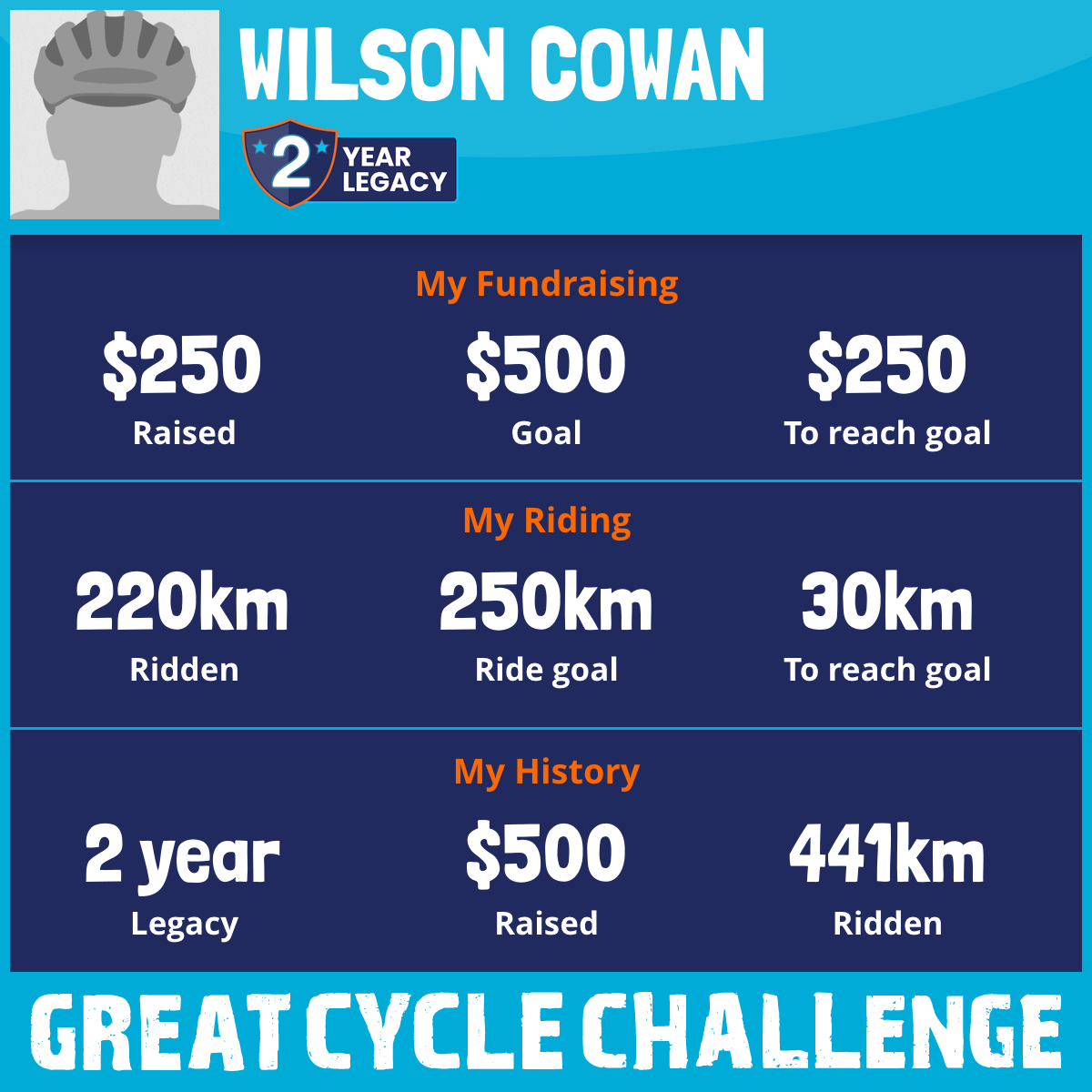 220 km Ridden$250 Raised2026