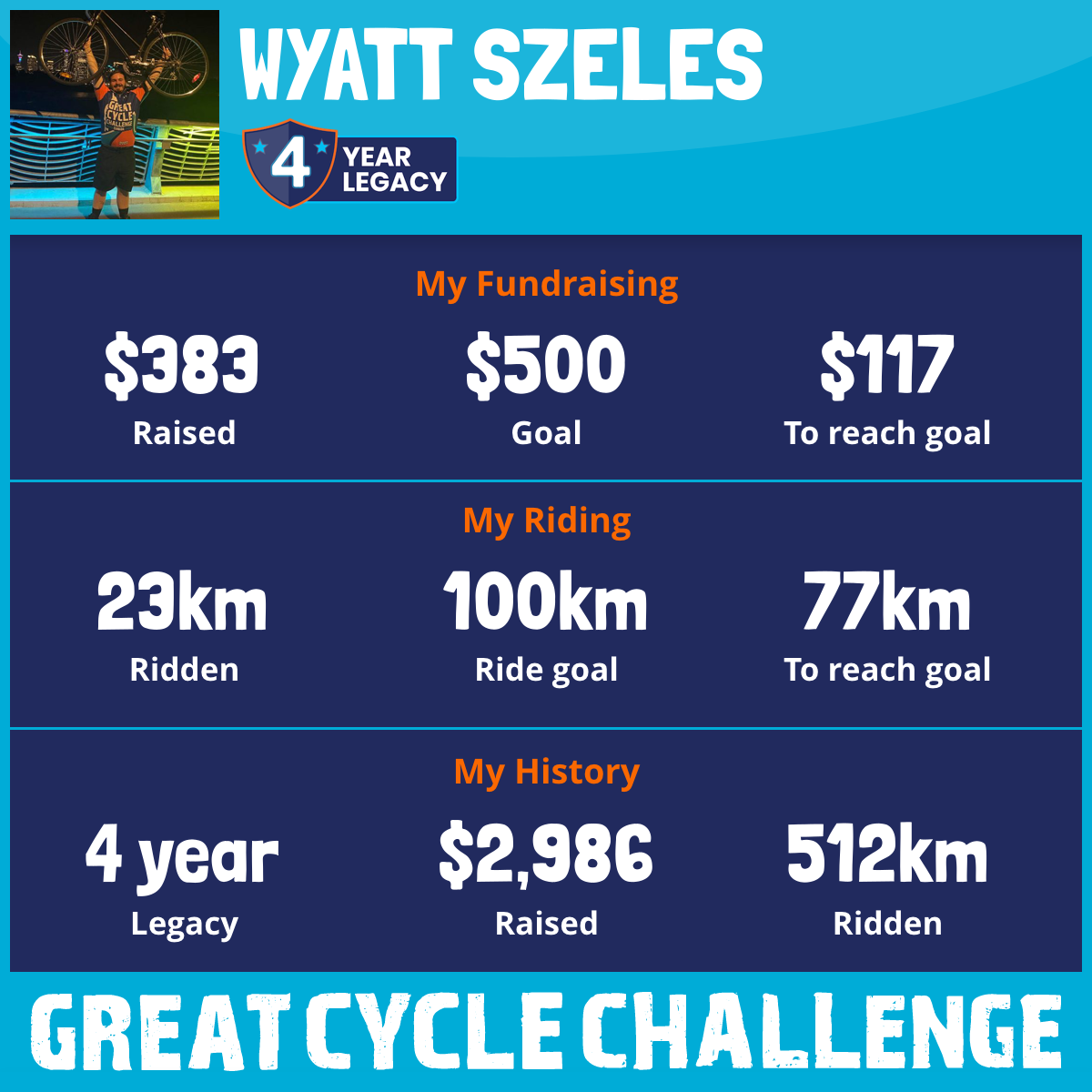 259 km Ridden$1,117 Raised2023