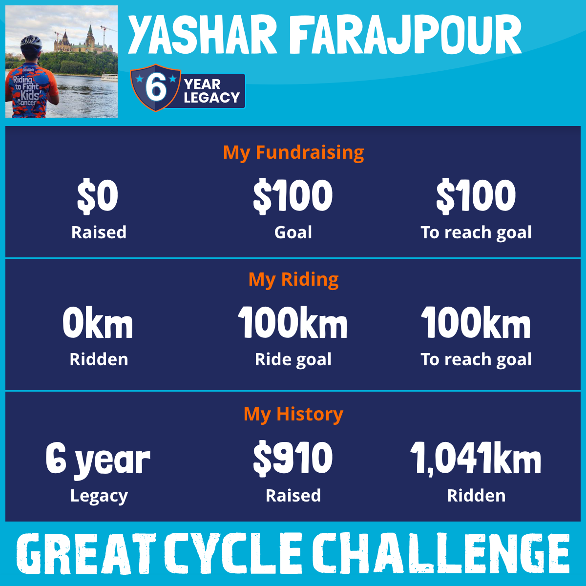 I am riding 100 km in memory of Arshnaz Heshmat. Please sponsor me and support my challenge to fight kids' cancer and save little lives.