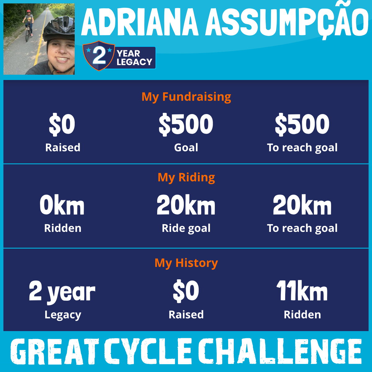 I am riding 20 km in memory of Adriana. Please sponsor me and support my challenge to fight kids' cancer and save little lives.