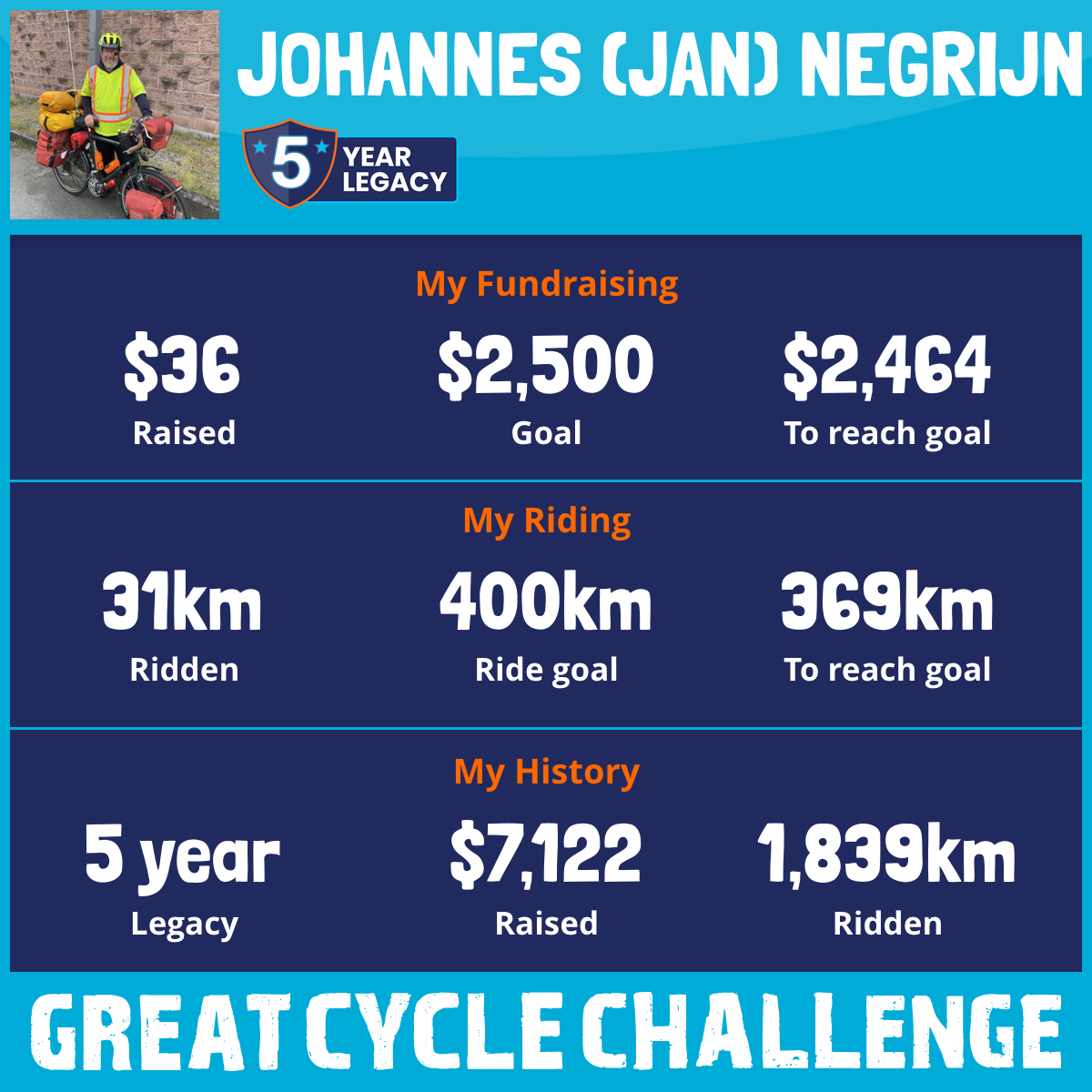 306 km Ridden$1,507 Raised2022