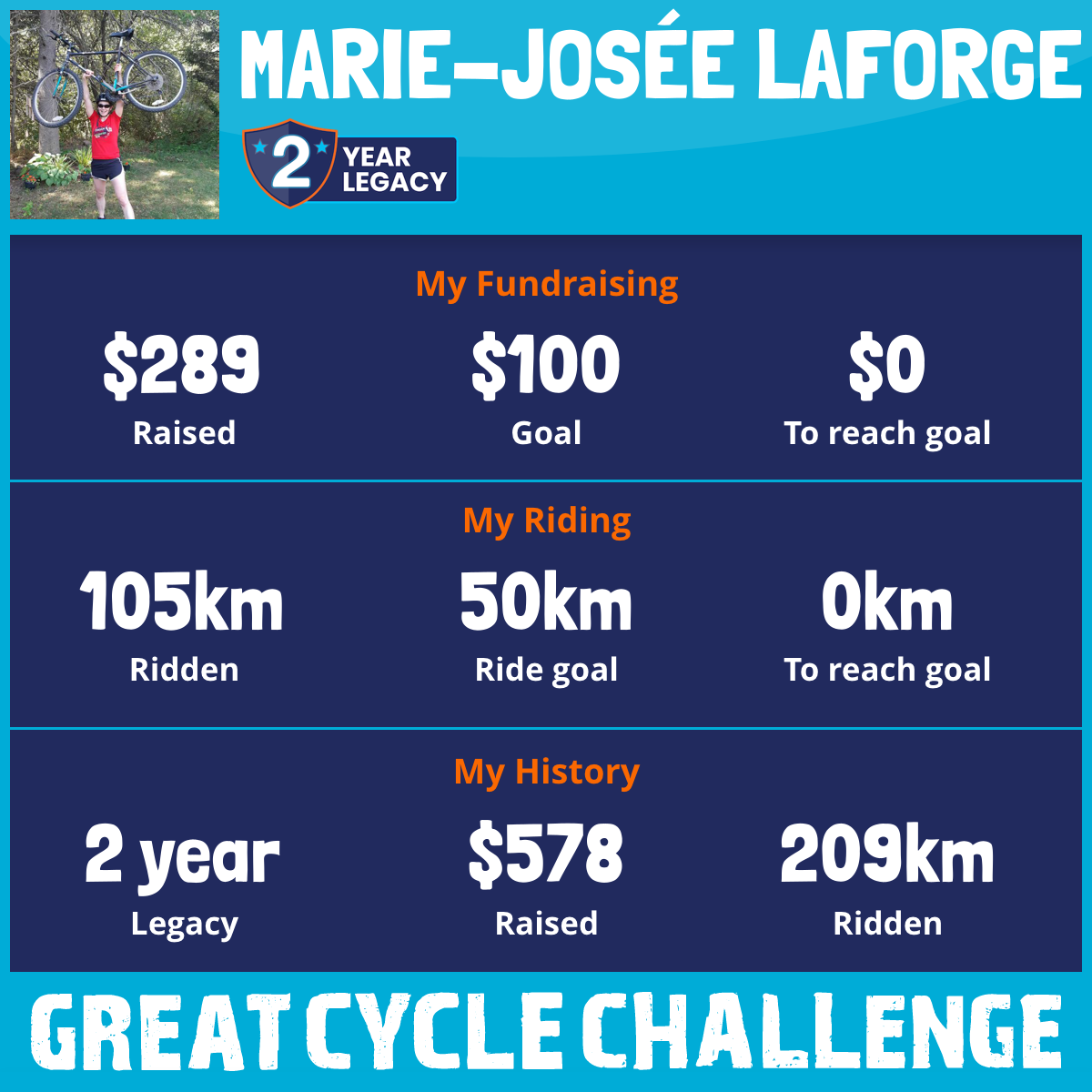 105 km Ridden$289 Raised2026
