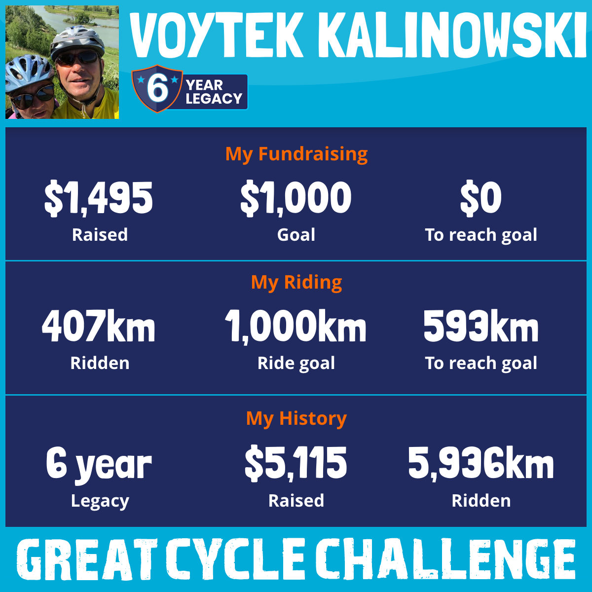 1,391 km Ridden$1,495 Raised2026